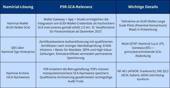 Namirial-Lösungen im Kontext der PSR-SCA-Anforderungen: