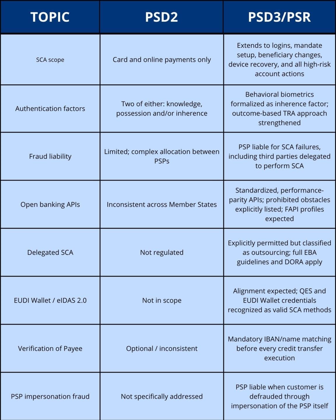 SCA obligations become directly enforceable via the PSR in late 2026. The quality of authentication factors, the liability for delegation, and the fraud monitoring requirements set a new baseline for every PSP operating in the EU.