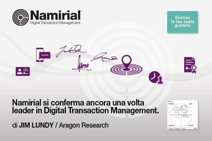 Namirial nominata di nuovo leader in Digital Transaction Management da Aragon Research